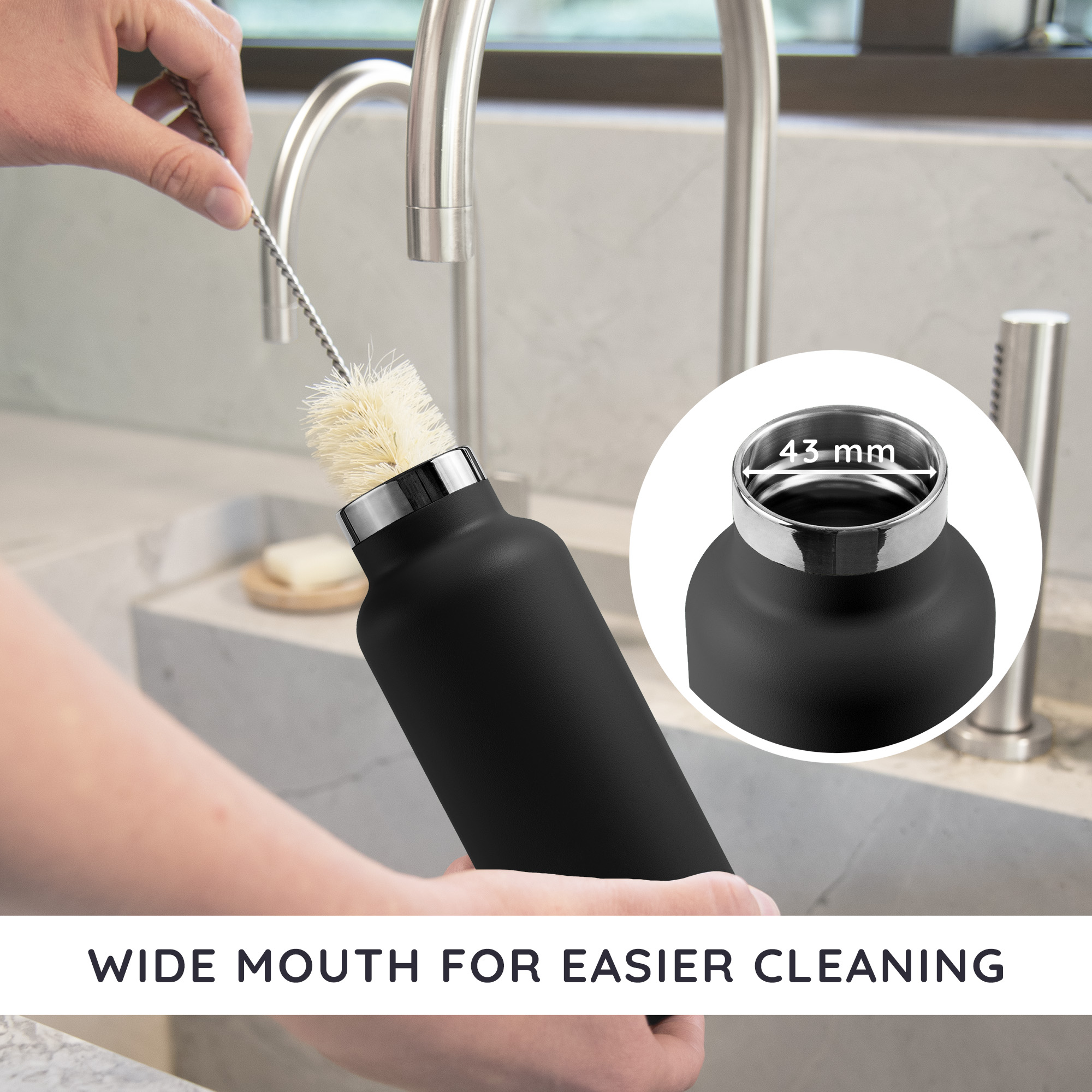 Sticla din inox de la Bambaw nu conține plastic sau BPA, este termoizolantă (păstrează băuturile calde 12 ore și reci 24 de ore) și are un design simplu și elegant, fiind ideală atât pentru drumeții, cât și pentru birou, yoga, călătorii sau activitățile de zi cu zi.